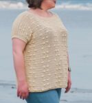 This crochet shirt pattern is a fun and textured crochet top. The bobble details makes it both a great spring crochet project and summer crochet project. However, it will work well as a layering crocheted t-shirt throughout the whole year.
